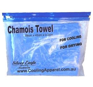 Chamois Towels remove surface body heat keeping you refreshingly cool. Made of hi-tech polymer sponge material are also a great Swim Towel / Pet Towel.